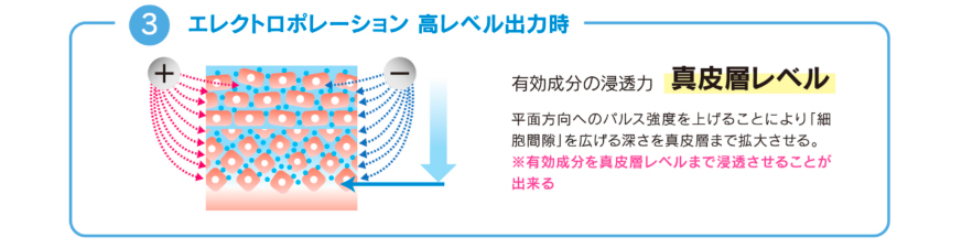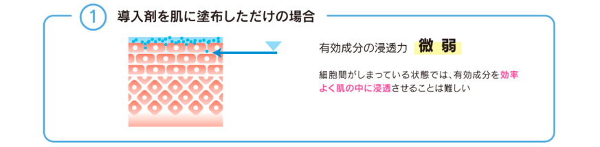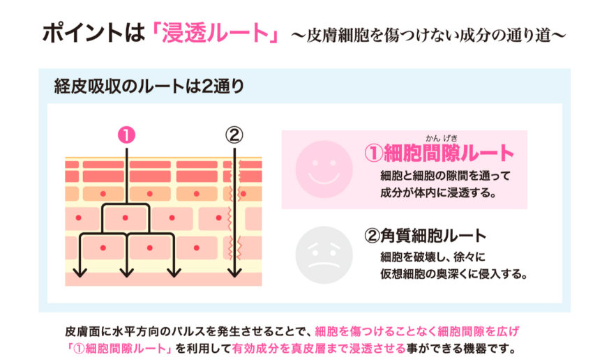 エレクトロポレーションの場合、肌表面にダメージを与えずに、肌の奥まで美容成分を届けることが期待されます。