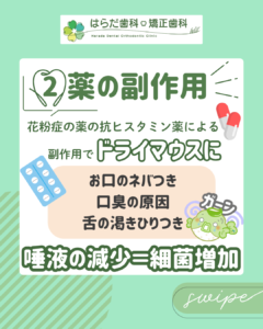 花粉症の薬の抗ヒスタミン薬による副作用でドライマウスに