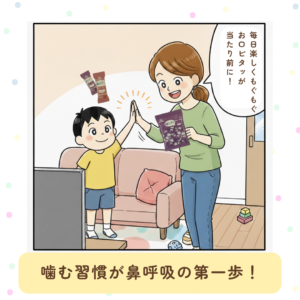 歯並びや顔立ちへの影響:お口周りの筋肉が正しく発達しないと、将来の歯並びにも関わってきます。